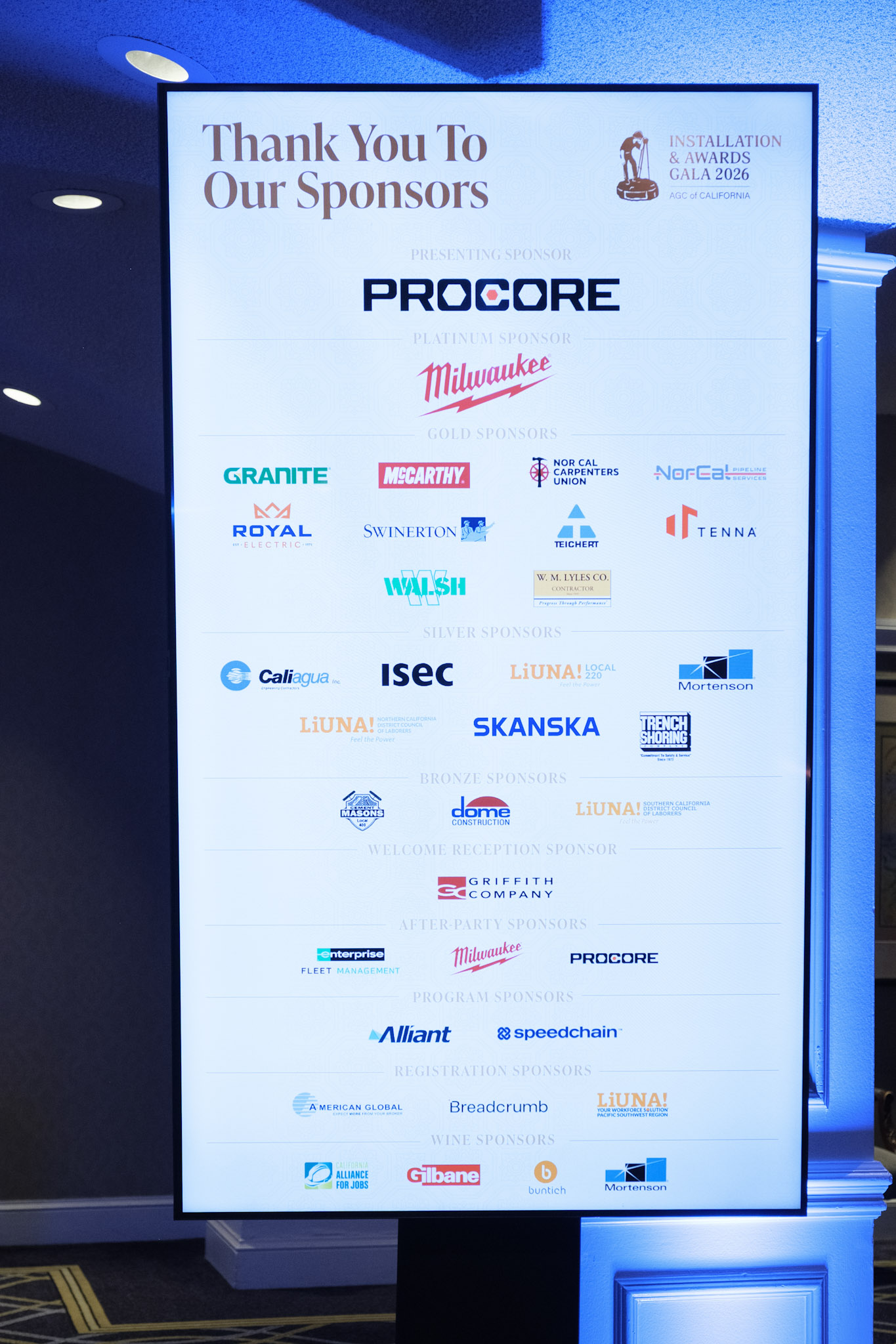 Photos from our 2026 Gala Reception sponsored by Griffith Company at the Fairmont San Francisco on January 30th